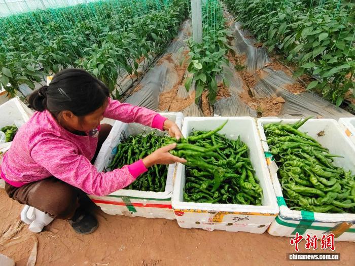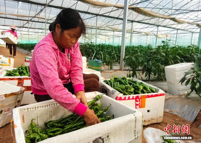 图为工人正在采支辣椒。记者 黄素梅 摄